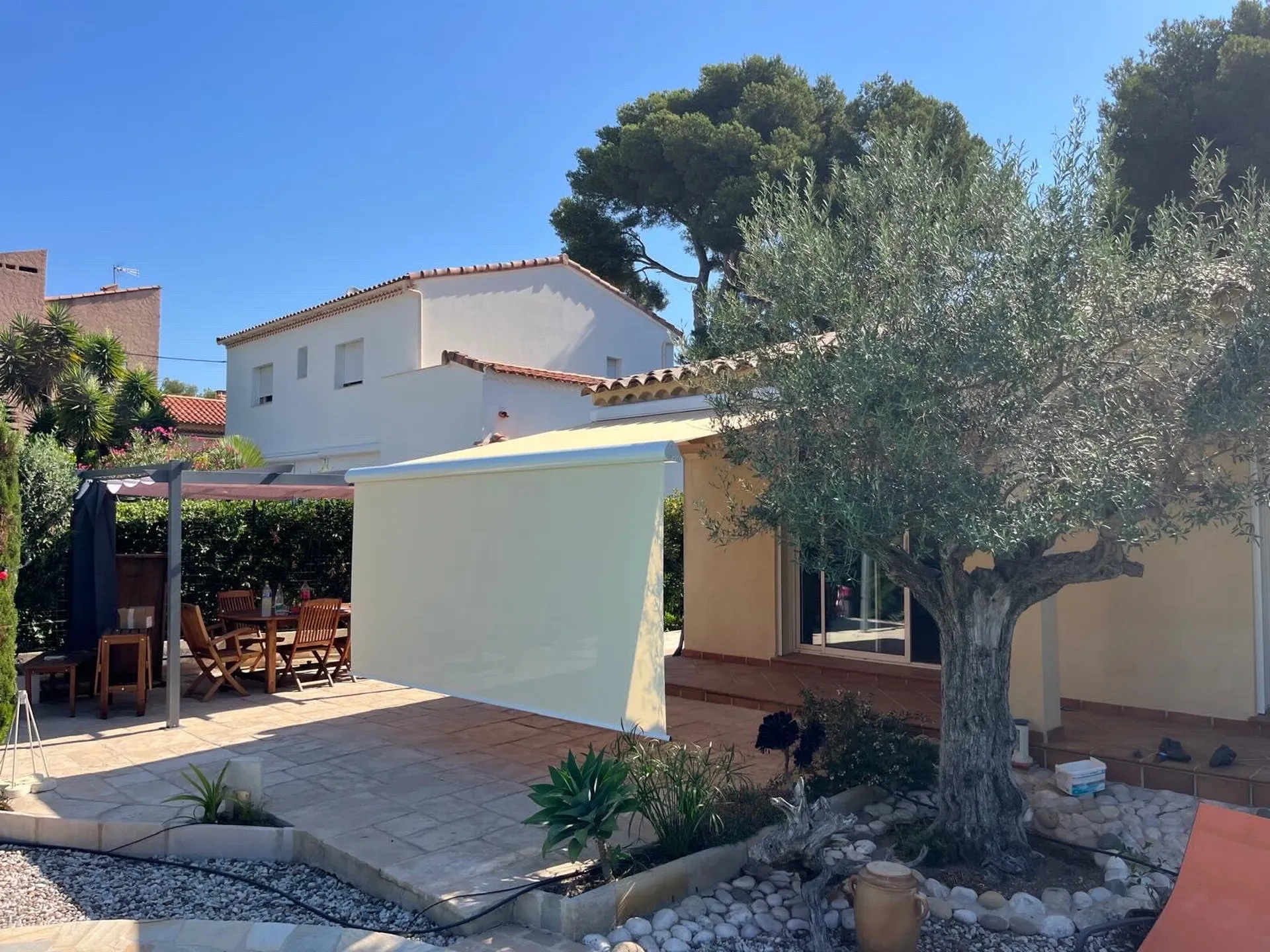 Le store banne Marquises Onyx sur Fuveau se distingue par sa structure en aluminium et ses bras renforcés, permettant une avancée jusqu’à 4 mètres pour une largeur maximale de 7 mètres. Grâce à son coffre intégral, la toile et le mécanisme sont protégés des intempéries, garantissant une longévité accrue.